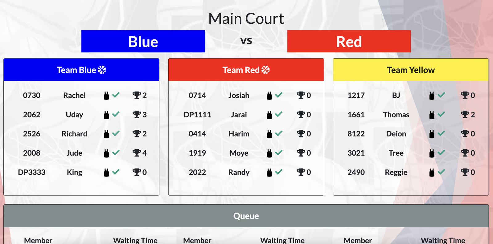 Our efficient queue system keeps games moving smoothly with organized rotations and clear structure, ensuring minimal waiting time and more time on the court. Jerseys are assigned for easy team separation, helping maintain fast, consistent play throughout each run. The system also tracks win streaks and lifetime stats, adding a competitive edge and letting players see their performance over time.