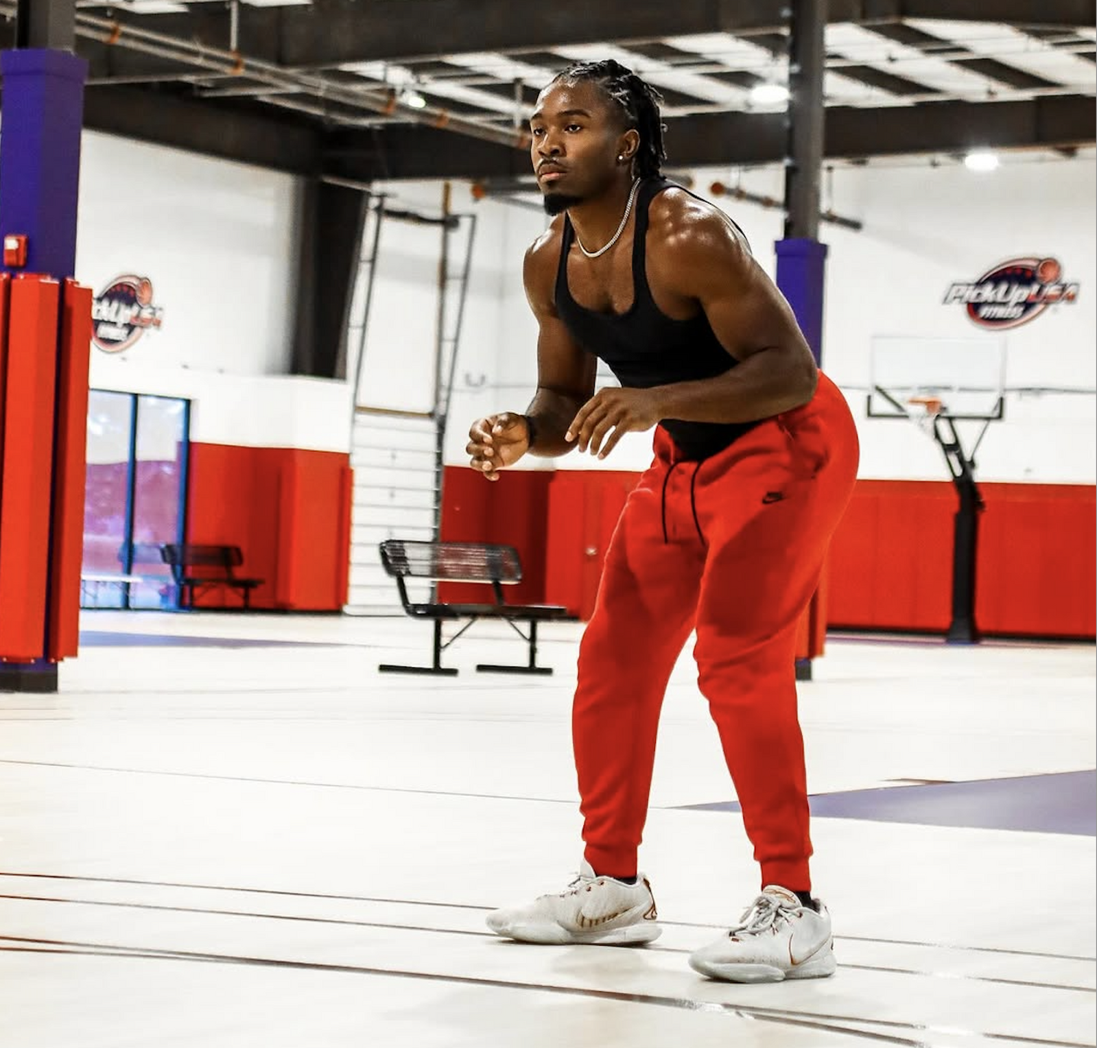 Our full fitness area is equipped with everything you need to train beyond the court. From cardio machines and dumbbells to squat racks and functional turf space, this is where athletes build strength, improve conditioning, and stay game ready. Whether you're warming up before runs or putting in extra work after, the fitness room is fully accessible and built to support your performance.